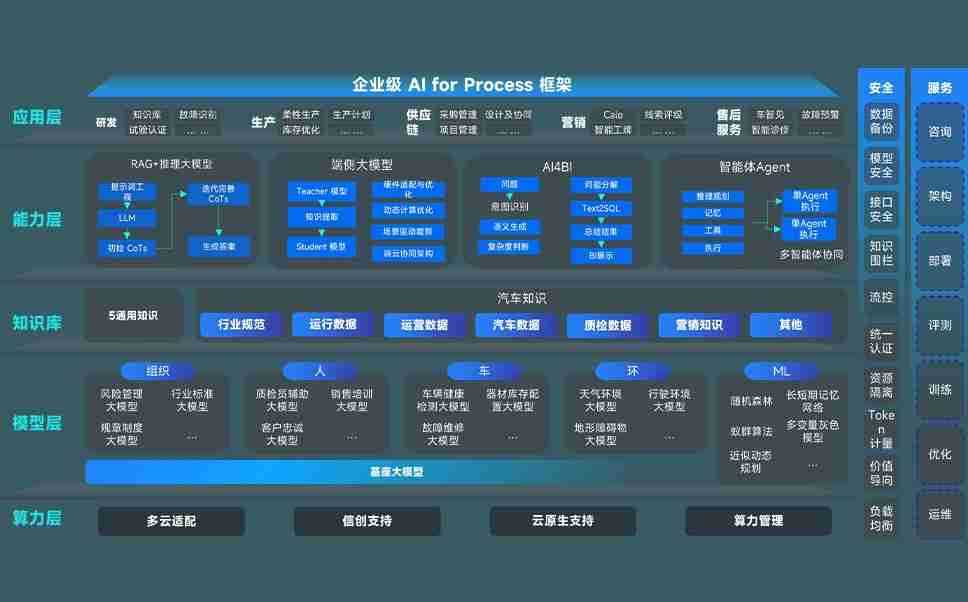 NG娱乐问学智车解决方案是一套基于AI技术的汽车行业智能化系统,,,覆盖从底层算力到顶层AI应用的全栈方案。。。方案由算力层、、模型层和应用层组成:算力层,,,方案支持多种一体机配置,,,具备云端灵活部署、、、、多云适配以及动态优化计算资源的能力;模型层,,NG娱乐问学平台版提供了企业级AI应用一站式构建与管理平台,,,,支持基于后训练强化技术的汽车企业专属模型的训练、、评测和运营;应用层,,,NG娱乐问学DeepSeek版提供包括超级员工、、智能招采、、智能营销、、、、智能客服、、AI for BI等一系列解决方案,,,可助力汽车行业实现数字化转型,,让管理更智能、、响应更敏捷。。